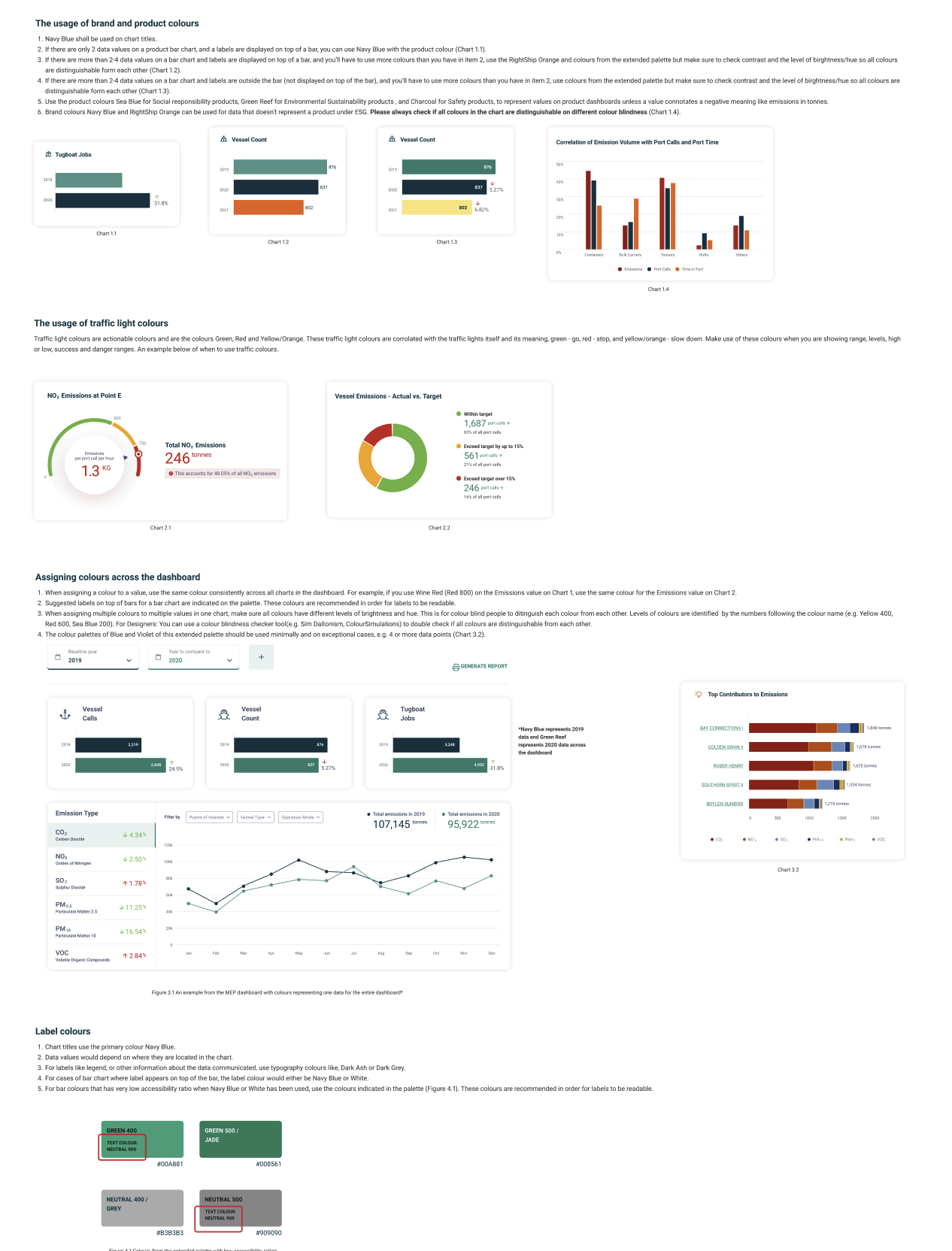 Figure 3 Examples of the component anatomy, chart usage guidelines, do’s & don’ts, and customising one of the most complex component in the design system (Tables).
