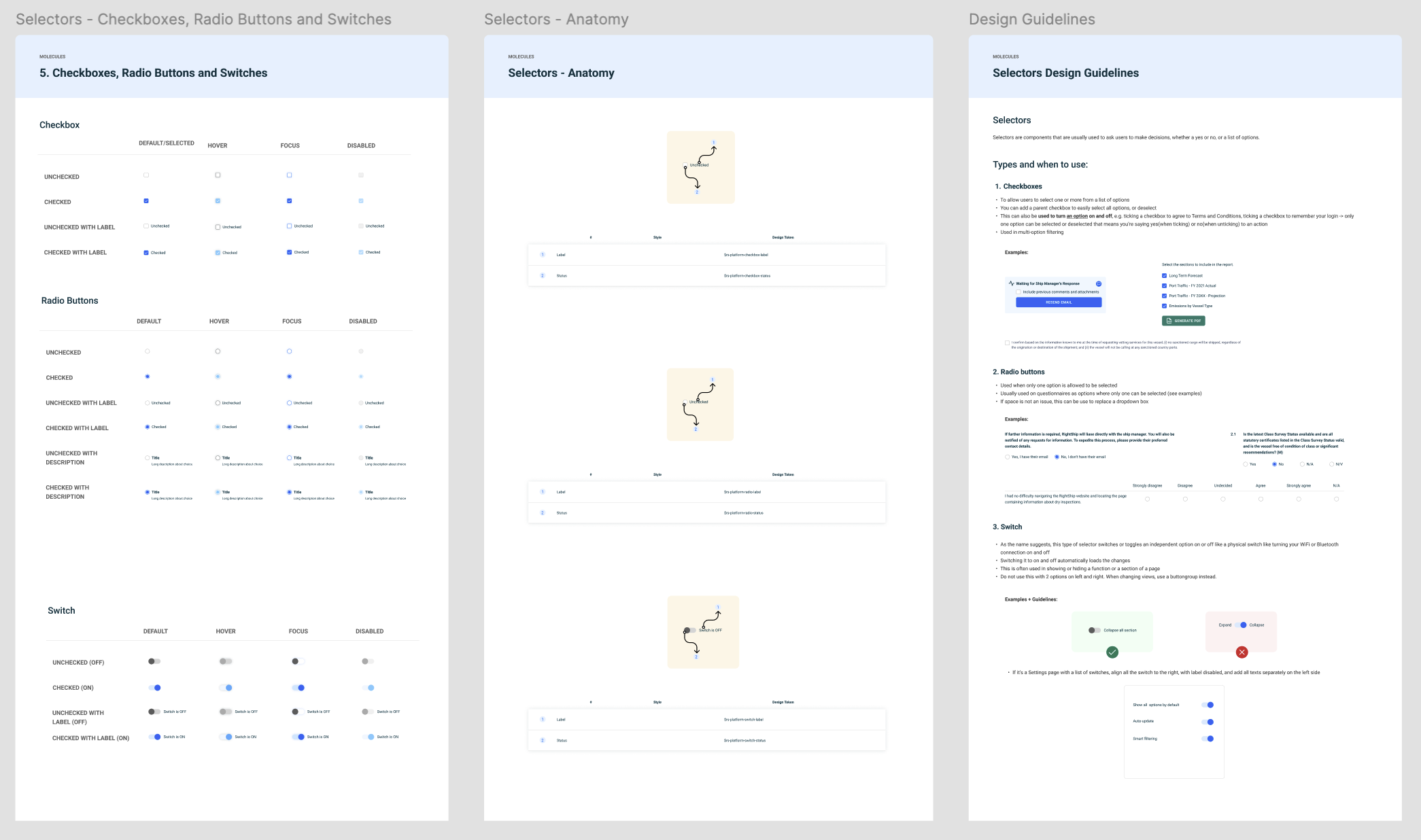 Figure 5 Image showing one of the design system components, its variants, the anatomy and the usage guidelines